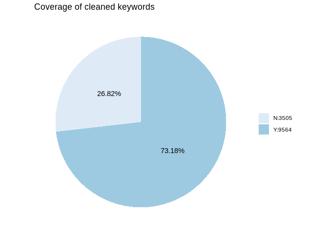 We calculate the cleaned keyword coverage from source data first. In